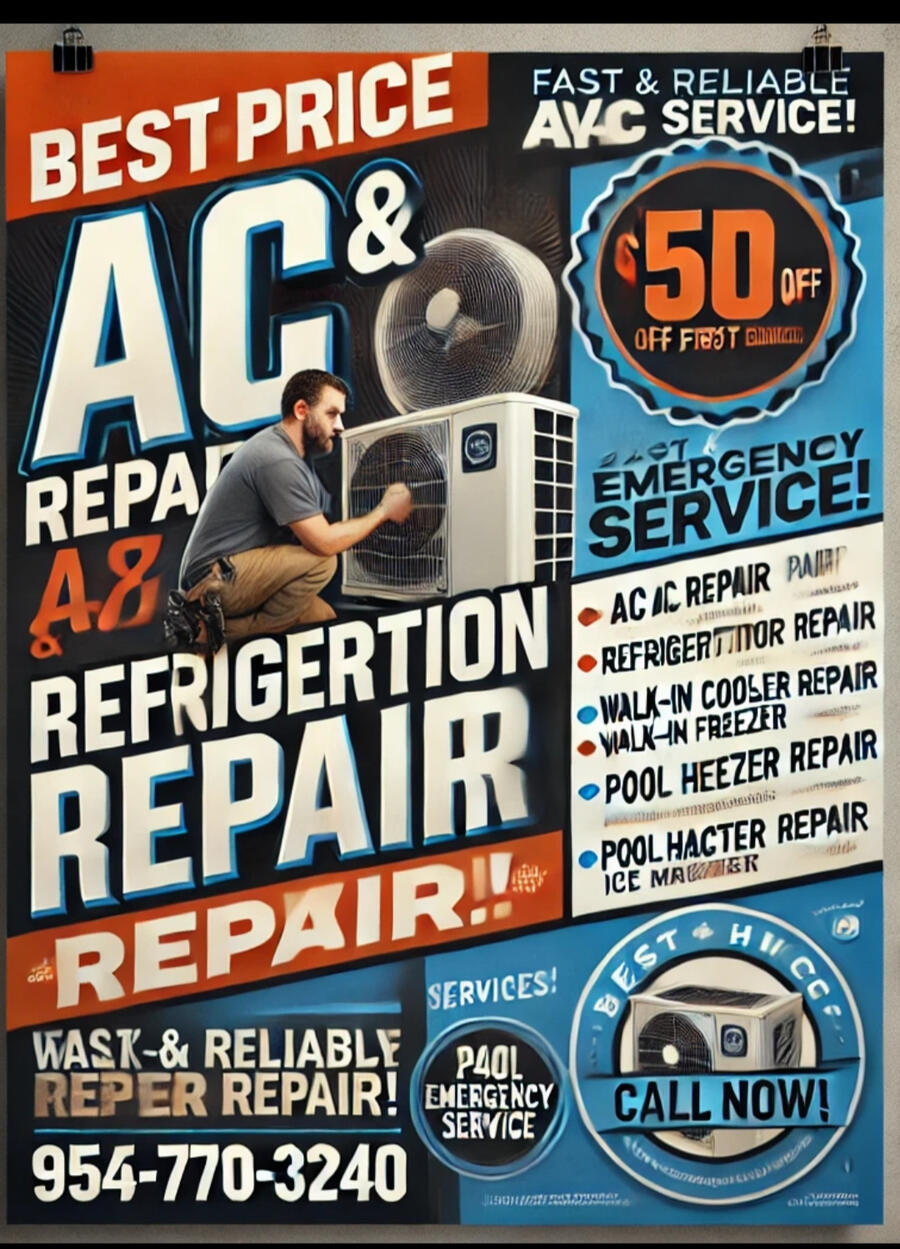 Air Conditioning Repair ServiceRefrigeration repair ServicePool Heater Repair ServiceWalk In Cooler Repair ServiceWalk in Freezer RepairIce Machine RepairA/C Coil cleaning Starting at 199.00A/C Refrigeration equipment